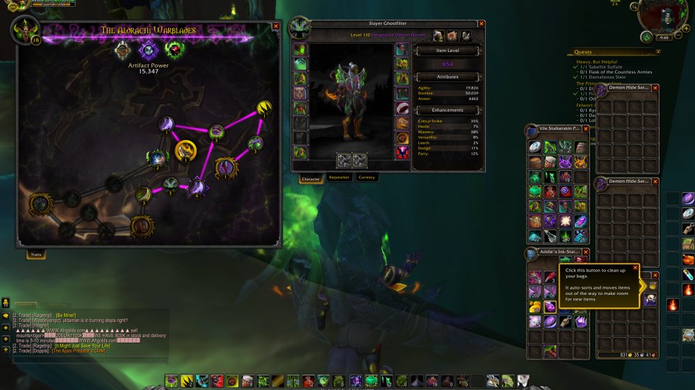 854 Vengeance DH = Raid READY = 879 Artifact Weapon = 349 Eur