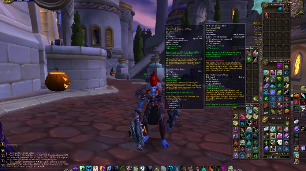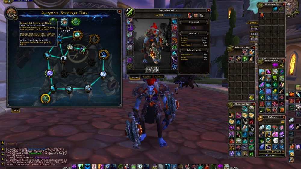871 Resto SHAMAN = 4715 Achievs = 2/7 Mythic EN = Legendary Hands = 898 Artifact Resto AK Level 10 | 871 Artif. Elemental | 869 Artif. Enha = Mimiron's head / Onyxian Drake = 549 Eur