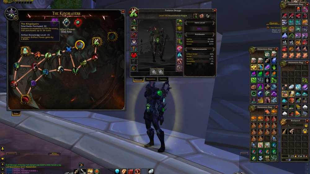 886 Assa ROGUE = 10870 Achievs = 2 BIS Legendaries Equipped = 888 Artifact ilvl - 32 Traits - AK Level 15 = OLD Amani Bear - Mimiron's Head - Warglaives of Azzinoth - Sulfuras hand of ragnaros = 6/7 Mythic EN = 2/3 Heroic TOV = 879 Eur