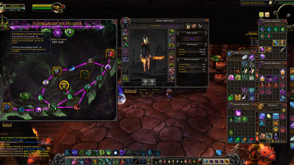 880 Havoc DH = Two Legendaries Equipped = 6105 Achievs = 31 Traits - 14 AK Level =- 1/7 Mythic = 549 Eur