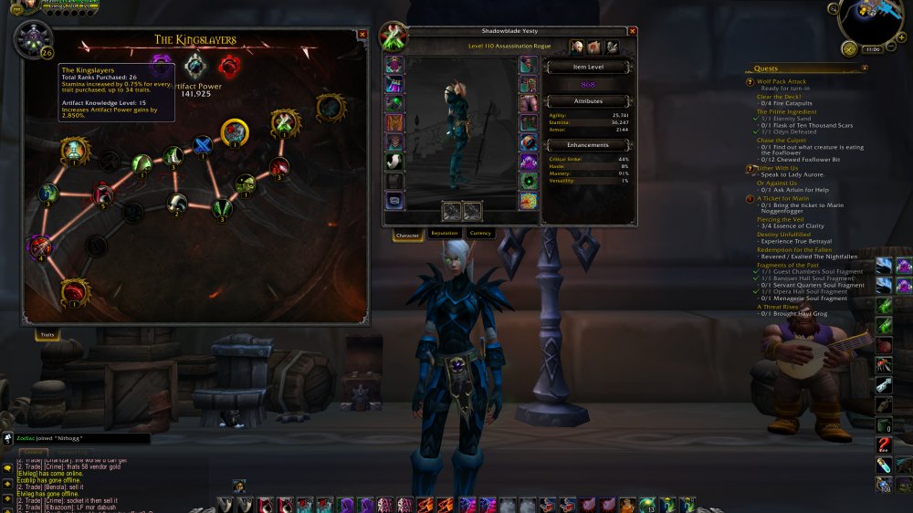 871 Assa ROGUE = 2465 Achievs = Legendary Legs = 896 Artifact = 25 Traits - 15 AK Level / 7/7 HC EN = 869 Mage & 853 Warrior = 279 Eur