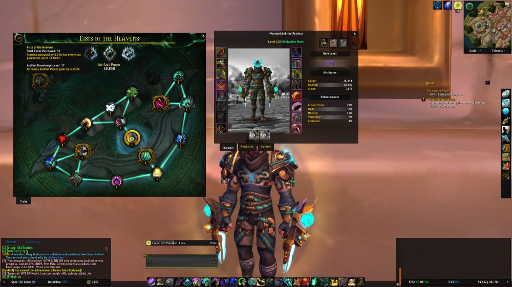 876 WW MONK = 4295 Achievs = 7/7 Heroic = 891 Artifact - 31 Traits- 17 AK Level = Llothien Prowler = 249 Eur
