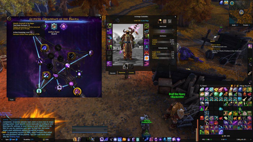 874 Arcane MAGE = 1280 Achievs = Legendary Waist = 902 Artifact - 24 Traits - 13 AK Level = 7/7 Heroic = 199 Eur
