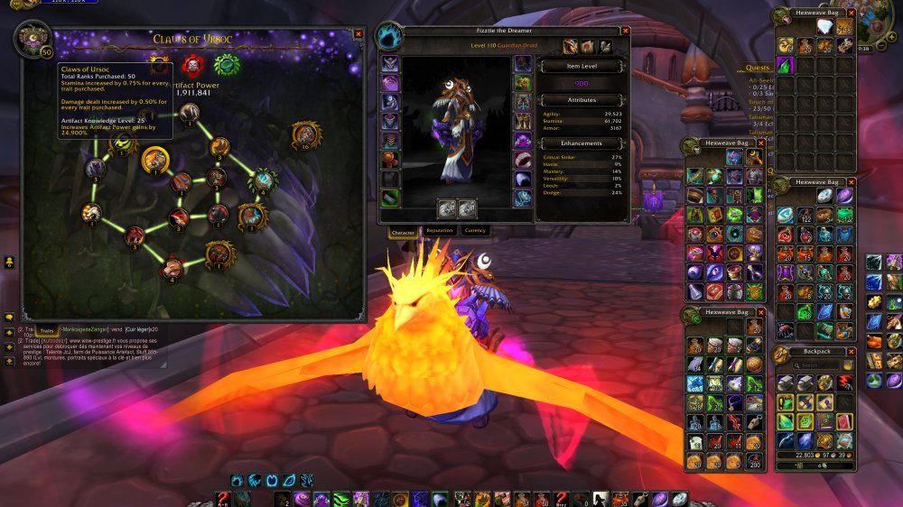 910 Guardian DRUID = 10870 Achievs = 4/10 Mythic NH & 7/7 HC EN & 3/3 HC TOV = Ashes of Al'ar | Mimiron's head | Fathom Dweller | = Shadowmourne & Val'anyr = 25 AK Level = 50 Traits Guardian - 916 artifact / 35 Traits Resto - 900 Artifact / 35 Traits Boomkin - 890 Artifact / 31 traits Feral - 894 Artifact = Prestige 3 - Lvl 49 - PVP = 5 Legendaries: 3 Guardian - Chest | Legs & Bracers | Tanking Ring + Sephus Secret Ring = 449 Eur