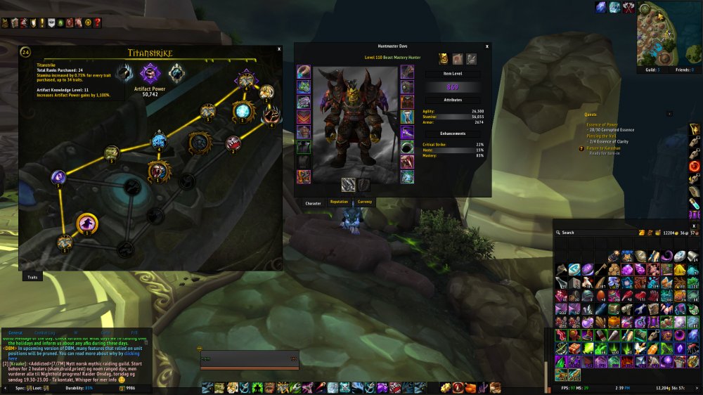 869 Hunter = 17480 Achievs = Swift Spectral Tiger | Ashes of alar | Fiery warhorse = Legendary Feet = 890 Artifact - 24 traits - 11 ak lvl = CM 9/9 GOLD MOP = 269 Eur