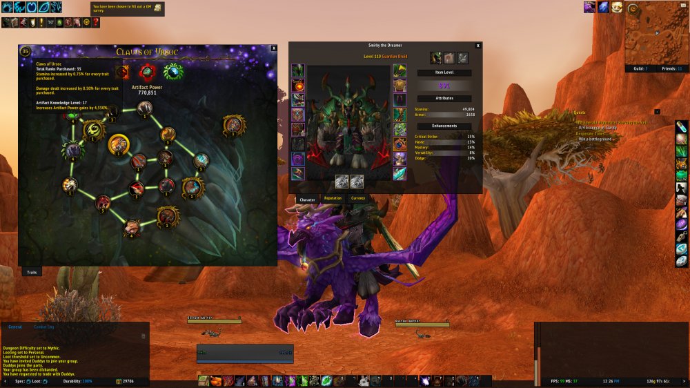 894 Guardian DRUID = 3095 Achievs = The Dreamer = 2/7 Mythic EN / 3/3 HC ToV = 35 Traits - 17 AK Level = 4 Legion Legendaries: Waist / Neck / Ring / Feet = Keystone Master: Rank 1 Challenge mode = 57 Rank world = Prestige 2 = 419 Eur