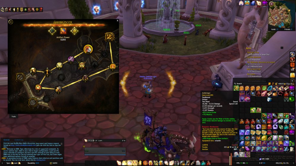 889 HOLY Paladin = 8700 Achievs = 7/7 HC EN / 3/3 HC ToV / 4/10 NH = Two equipped Legendaries = 40 holy Traits - 21 Retribution - 15 Protection - 25 AK research level = 450K Golds = 249 Eur