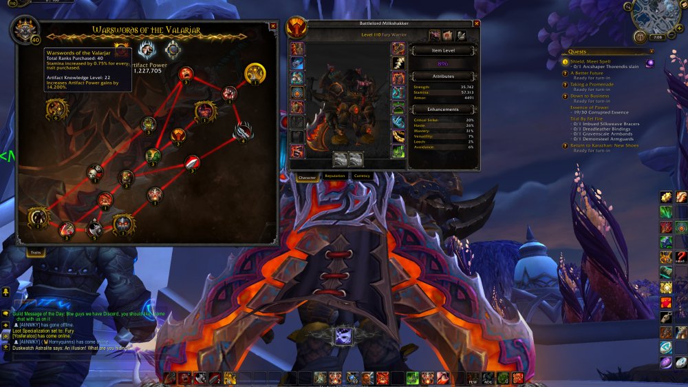 900 Fury Warrior = 2015 Achievs = 3 Legendaries, Two equipped = 40 traits Fury / 35 prot - 22 Ak lvl = 8/10 Heroic NH = 349 Eur