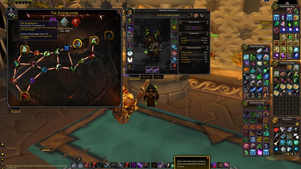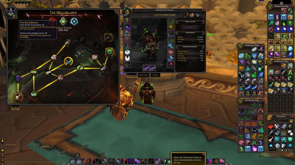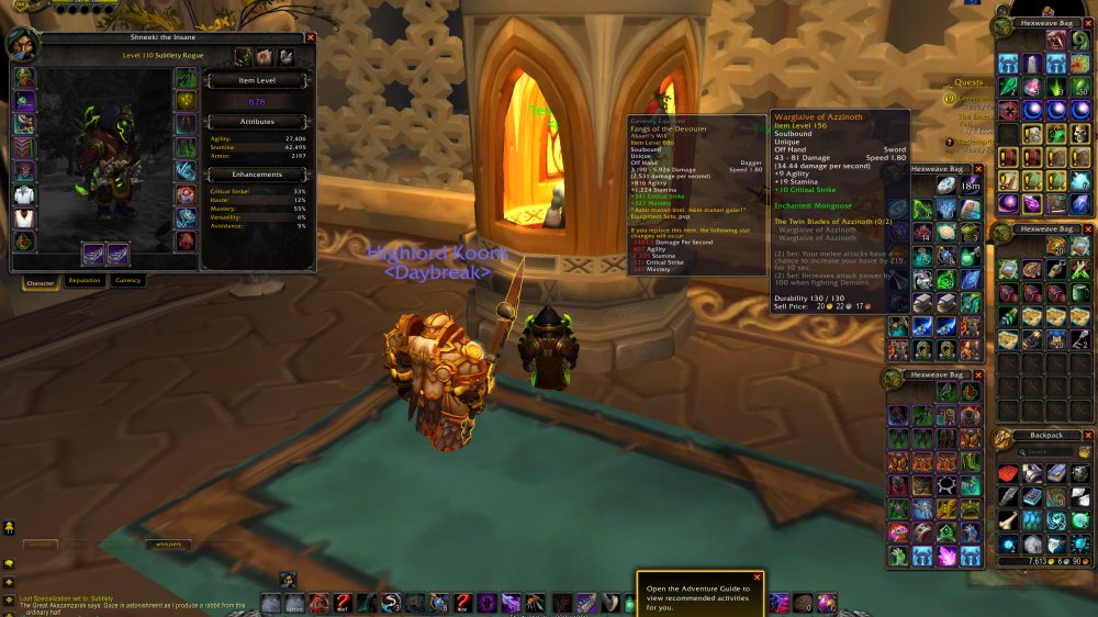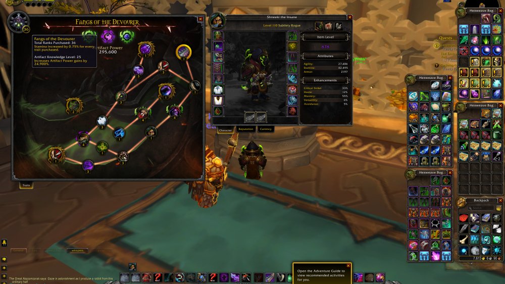 878 ROGUE = 20395 Achievs = 277 Total Mounts = 65 Feats of strength: Ashes of alar | Raven Lord | Fiery Warhorse | 4 Realm Best Challenge Modes Pandaria = Fangs of the Father | Warglaives of Azzinoth = Challenger x 2 PVP Seasons = The Insane in the Membrane = 9/9 CM Gold Pandaria | 8/8 CM Gold WoD = 25 AK Lvl - 36 Traits Subtlety | 31 Assa | 26 Outlaw = Transmogs: Of the silent Assasin | Warlords Season 3 Elite | DeathDealer Set = 449 Eur