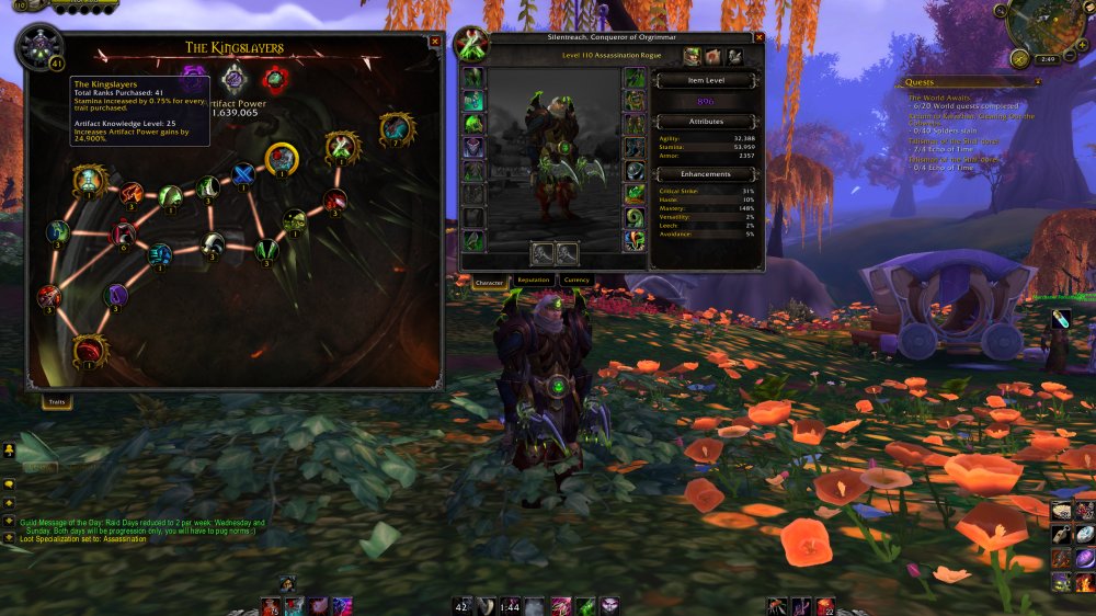 896 Assassination Rogue = Two 940 Legendaries = 7125 Achievs = 10/10 HC & 1 Mythic NH = 41 Traits Assa | 25 Outlaw = 25 AK lvl = 249 Eur