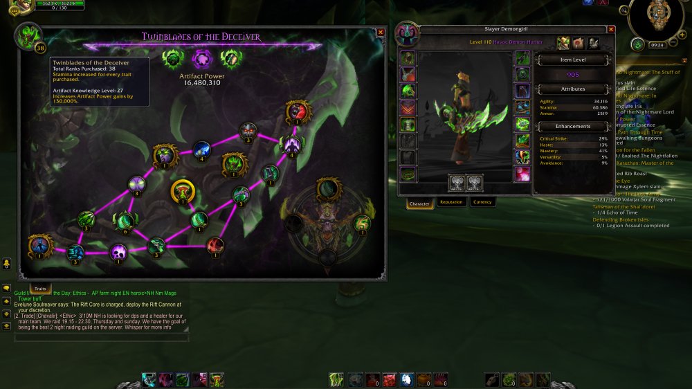 905 Havoc DH = 3x 940 Legendaries = 10/10 HC NH = 38 Traits - 27 AK Lvl = 199 Eur