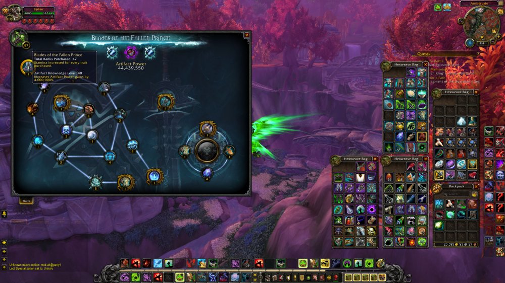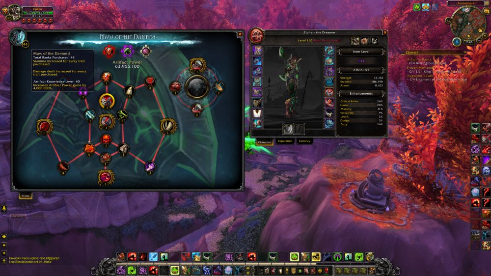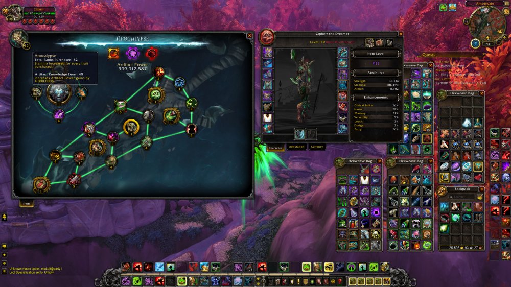 913 Unholy DK = 16965 Achievs = 7 Legendaries: Aggramar's Stride | Sephus'z Secret | Koltira's Newfound Will | Acherus drapes | Consort's cold core | Toravon's Witheout bindings | Perseverance of the Ebon Mart = 52 Traits Unholy | 47 Traits Frost - 44 Blood traits / 40 AK Research = 70 Feats of strength: Raven lord | Ashes of alar | Invincible Reins | Mimirons head | Warglaives of Azzinoth | Thori'dal Bow | Shadowmourne | Fangs of the father | Thunderfury | 4 x Challenger in Four Seasons | 8/8 CM WOD GOLD = 8/10 Mythic Nighthold = 3 x 110 Alts = 7 x 100 Alts = 307 Mounts = Tabard of Arcane = 479 Eur