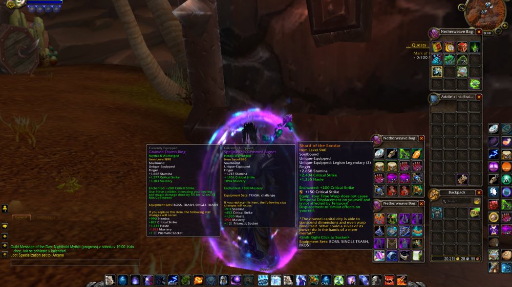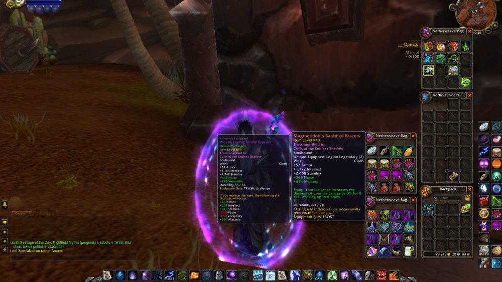 907 Arcane MAGE = 3475 Achievs = 6 Legendaries: Cord of infinity | Gravity Spiral | Magtheridon's banished bracers | rhonin's assaulting | Prydaz | shard of the exodar = 2 x 110 Alts = 399 Eur