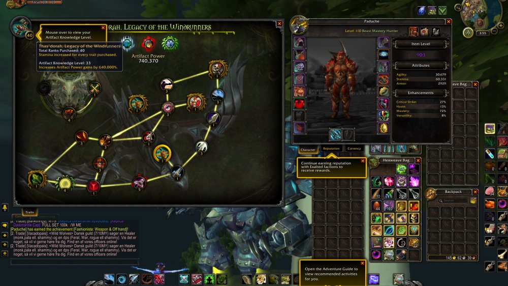903 BM Hunter = 3710 Achievs = Flying Legion = 45 Traits BM / 40 MM / 36 Survival - 33 AK Research = 5 Legendaries: Prydaz | Ullr's feather snowshoes | Roots of Shaladrassil | Roar of seven lions | The Apex Predator's Claw = 249 Eur