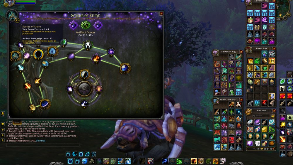 910 Resto DRUID = 49 Traits resto / 34 Feral / 43 Boomkin = 36 AK =6 Legs = 279 Eur
