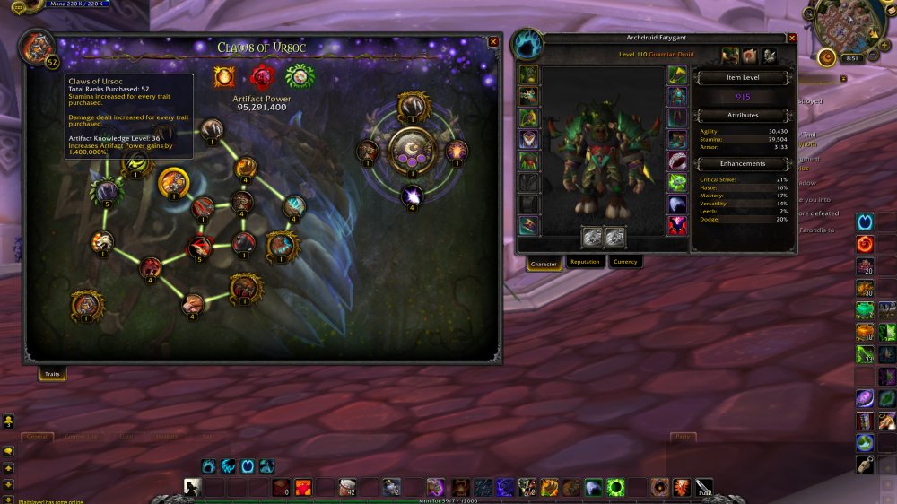 915 Guardian DRUID = 9310 Achievs = 5/10 Mythic = 52 Traits Guardian / 51 Boomkin / 35 Resto / 38 Feral / = 38 AK research = 13 Legion Legendaries: sephus'z secret | Impeccable Fel Essence | Dual Determination | Luffa wrappings | Skysec's Hold | elize's everlasting encasement | Ekowraith, creator of worlds | Cinidaria, the symbiote | Oakheart's puny quods | The emerald Dreamcatcher | Prydaz = 2x 110 Alts = 429 Eur