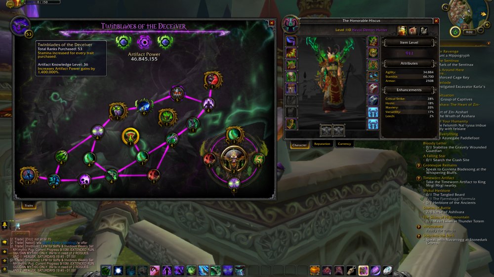 911 Havoc DH =3205 Achievs = 53 Traits - 36 AK lvl = Legion Flying = Leg in bag: Achor, the Eternal Hunger = 169 Eur