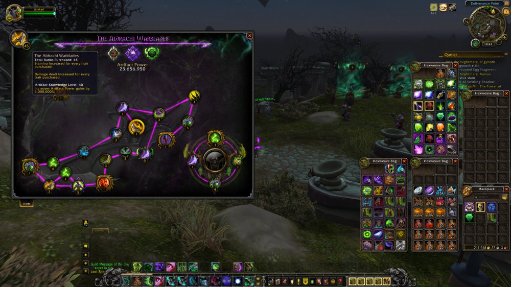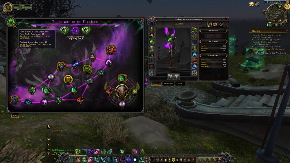 918 Havoc DH = 10/10 Mythic = 54 traits 45 Vengeance - 40 AK = 12 Legs: Raddon's | Mo'arg Bionic | Delusions of Grandeur | Kirel Narak | Cinidaria the symbiote | Prydaz | Anger of the Half-Giants = 900 ilvl Mage - 45 traits / 39 AK = 400 K Golds = 599 Eur