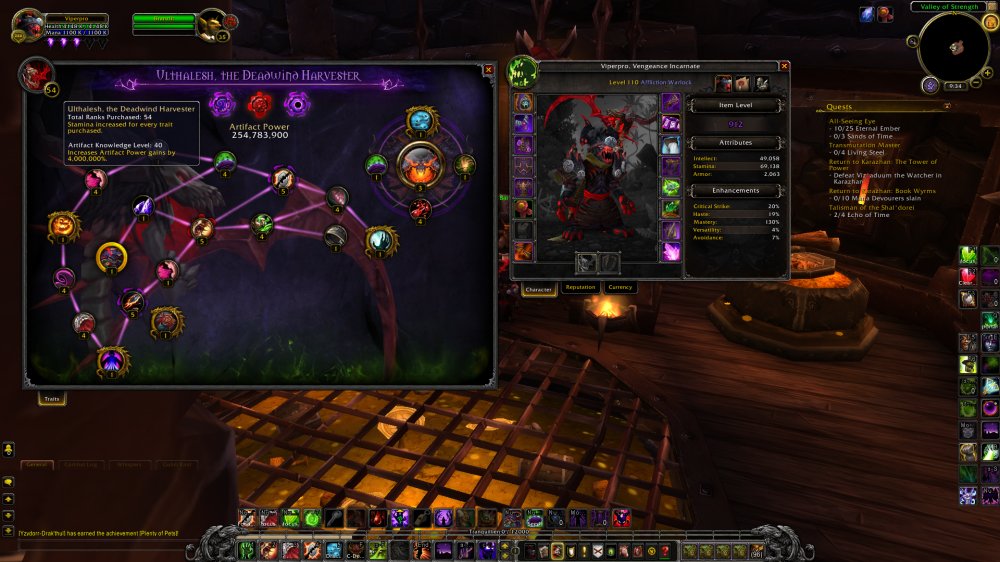 912 Affliction WARLOCK = 10/10 Mythic NH = 54 Traits Affli / 44 Destro / 43 Demo - 40 AK = 7 Legs = 4x 900 Alts, 40 AK Research on them = 419 Eur
