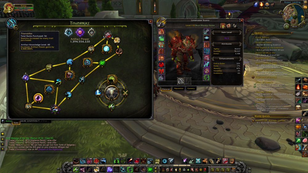 913 BM Hunter = 17780 Achievs = 913 MAGE = Ashes of al'ar = 5/9 HC ToS = 58 Traits BM - 54 Marksmanship 40 AK = Flying in Burning Isles = 211 Total mounts = 349 Eur