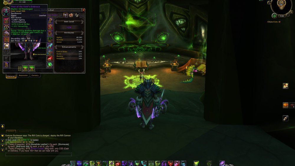 930 Havoc DH = 2x 970 Legs = 8/9 Hc ToS = 54 Traits Havoc / 44 Tank (922 ilvl weapon)- 41 AK = 2/6 HC Pieces Set = 239 Eur