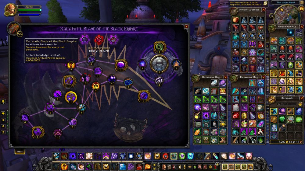 921 Shadow priest - 8/9 HC ToS - 970 Legs in bags: Norgannon's Foresight, Zeks Exterminatus, Mother Shahraz's Seduction, Heart of the Void, Twins Painful Touch, - 56 Traits Shadow / 53 Disco & Holy - 40 AK = https://worldofwarcraft.com/en-gb/character/draenor/aesthii
