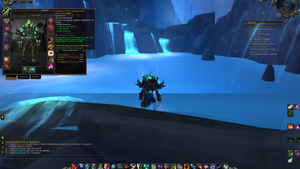 Gear: Trinkets in bags: Deceivers Grand design / terminus signaling beacon / Chrono shard Mage towers: