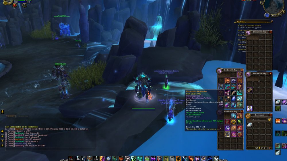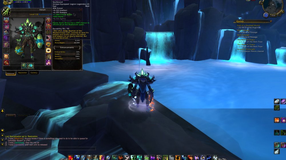 967 Resto Shaman = 11/11 HC & 11/11 N Antorus = 5/6 T21 = 75 Traits / 65 traits elemental (950 Weap) / 65 traits Enhancement (975 weap) = 5 Legendaries: Nobundo's Redemption / Uncertain Reminder / Insignia of the grand army / Deceiver's blood pact/ Prydaz = 2/6 T21= 279 Eur