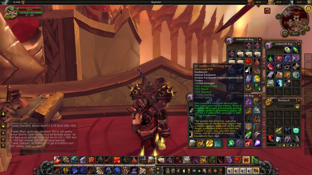 924 Arms WARRIOR = 7/9 HC = 1585 Achievs = Fiery Warhorse = Legs in bags: Kil'jaeden burning wish = 57 Traits - 41 AK = 199 Eur
