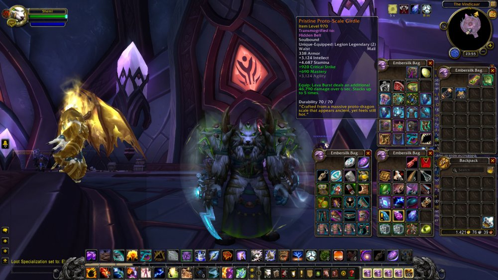 931 Elemental SHAMAN = 1480 Achievs = 59 Traits Ele / 35 Resto - 42 AK =Leg in bagS: Pristine Proto Scale Girdle = 249 Eur