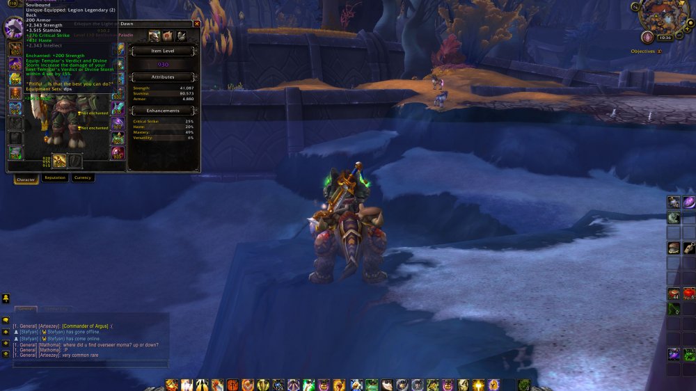 935 Retri PALADIN = 1725 Achievs = 57 traits / 49 traits protection / 49 Traits holy = 2 Leg in bagS: Rethu's incessant courage / Liadrin's fury Unleashed = Unlocked access via quests to Argus Zone = Order hall, 6/6 Followers, 900 ilvl = 229 Eur