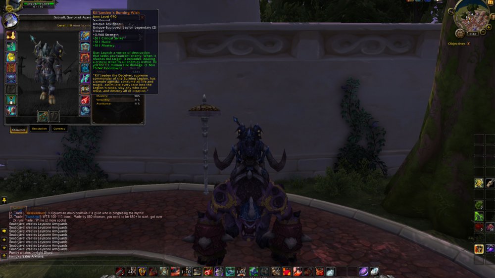 944 Arms WARRIOR = 3650 Achievs = 72 Traits Arms / 60 Fury ( 952 Weap) / 60 Prot ( 946 Weap) = 2 Equipped legendaries, Soul of the Battlelord in bags = 9/9 HC ToS = Vibrant mana rey / Darkspore mana ray = 6/6 T20 Set = Hidden Skin: Arcanite BladeBreaker 2 Colours = 259 Eur