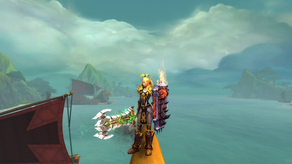 Items in bags for all specs:[Razdunk's Big Red Button](460ilvl trinket Retry spec),[Fluorescent Flora Stompers](455ilvl),[Boots of Hallucinatory Reality](460ilvl),Weapon Retribution spec[Logg](460ilvl+gem),[Forbidden Obsidian Claw](460ilvl trinket),[Protecting Bit Band]455ilvl,[Gauntlets of Absolute Authority]455ilvl ,21x[Tidalcore]